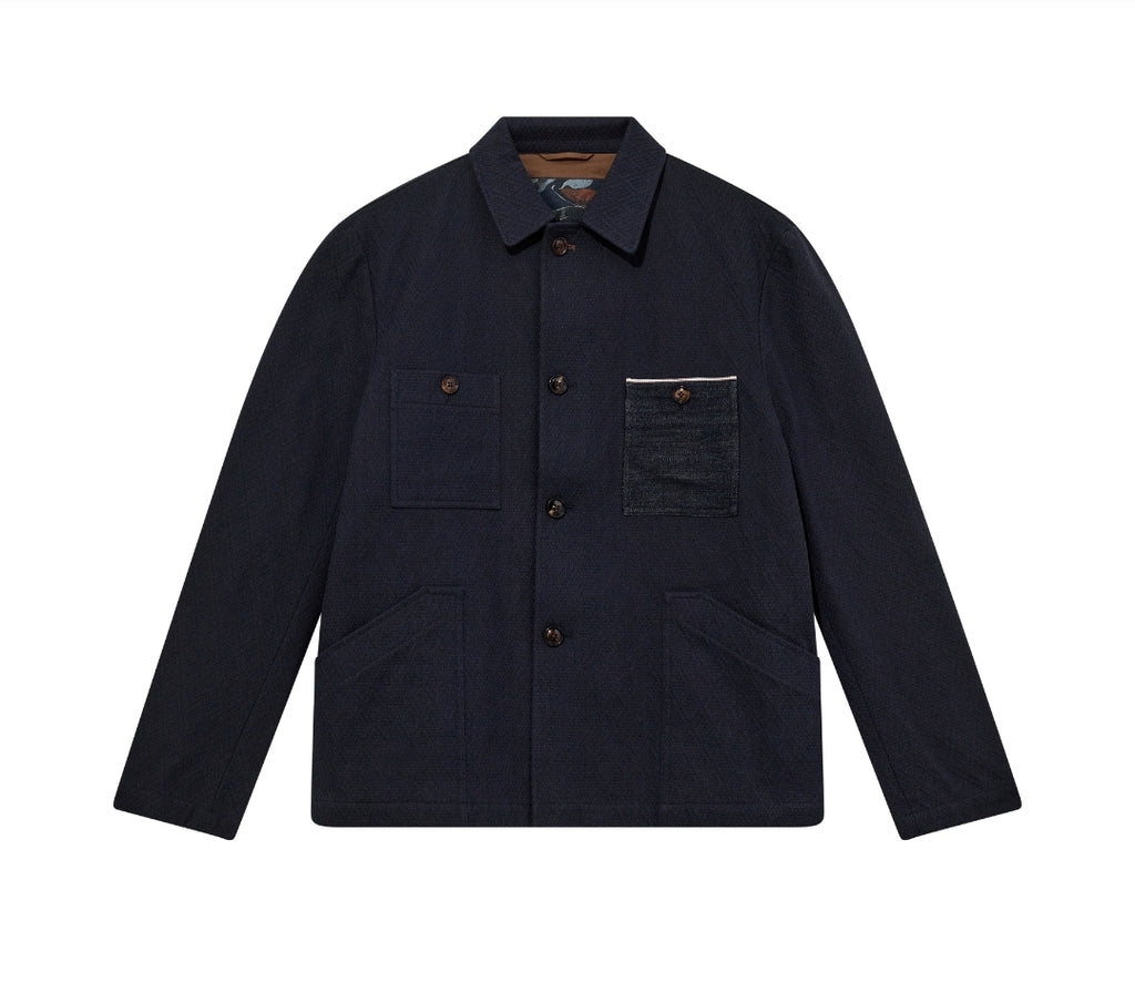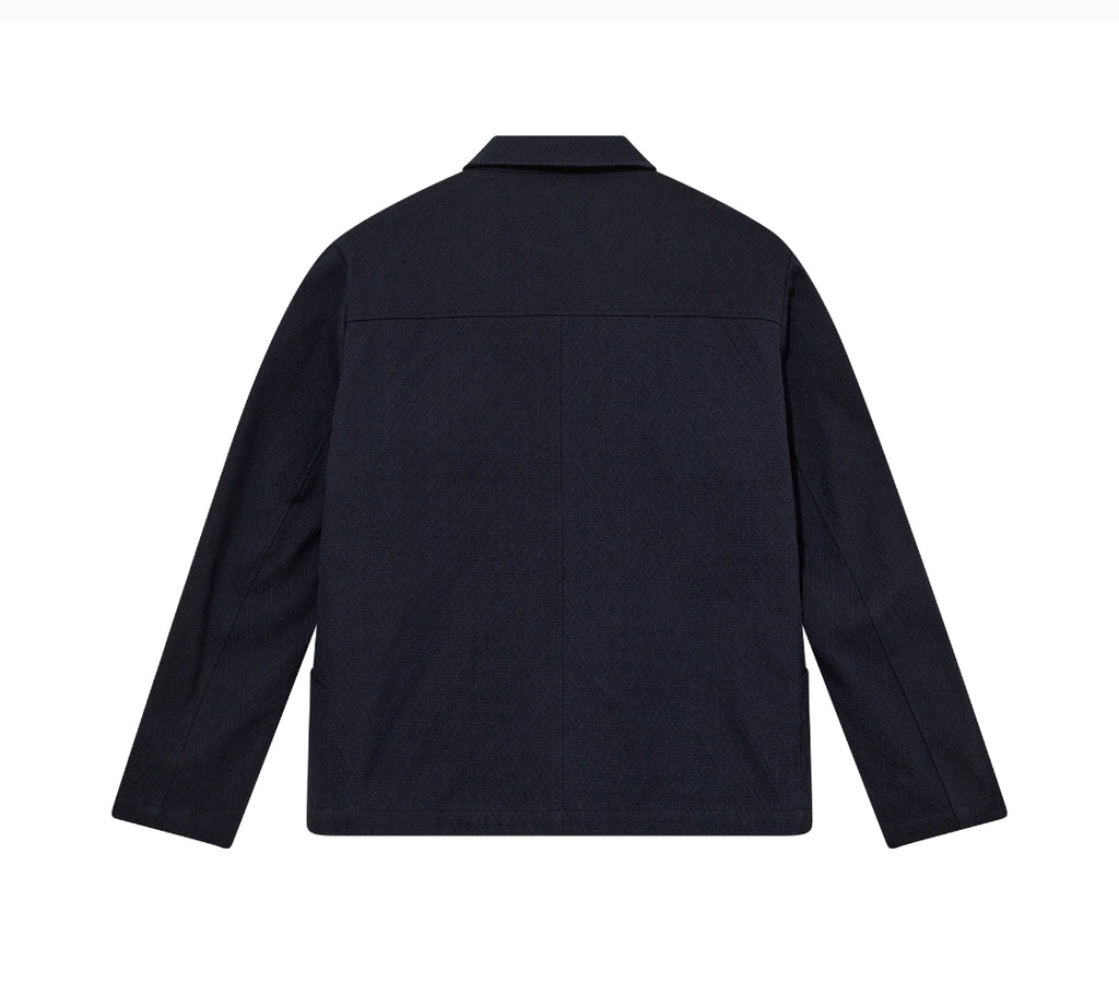 Crafted from Japanese Jacquard denim, this jacket brings refined texture to a workwear classic. Designed in a regular fit with a classic collar and button closure, it’s finished with a self-edge denim pocket for an authentic touch. A modern statement piece rooted in craftsmanship and function.